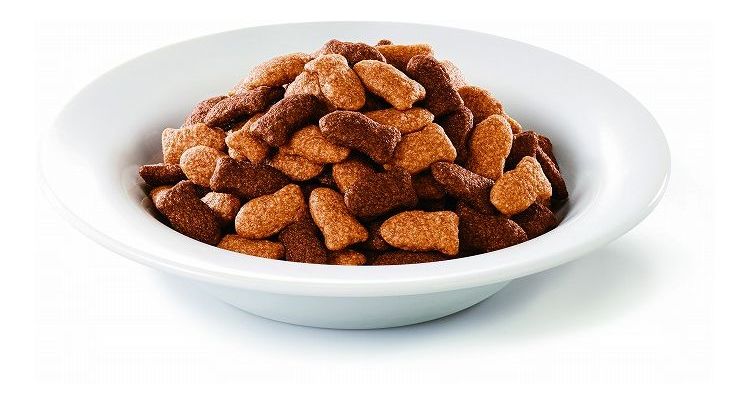 穀類(小麦、コーングルテン、米等)、肉類(家禽ミール等)、動物性油脂、たんぱく加水分解物、豆類(脱脂大豆、えんどう豆)、フィッシュパウダー(サーモン、白身魚)、ミネラル類(カルシウム、リン、カリウム、ナトリウム、クロライド、マグネシウム、鉄、銅、マンガン、亜鉛、ヨウ素、セレン)、ビタミン類(A、D、E、B1、B2、パントテン酸、ナイアシン、B6、葉酸、ビオチン、B12、コリン)、カラメル色素、アミノ酸類(タウリン)
