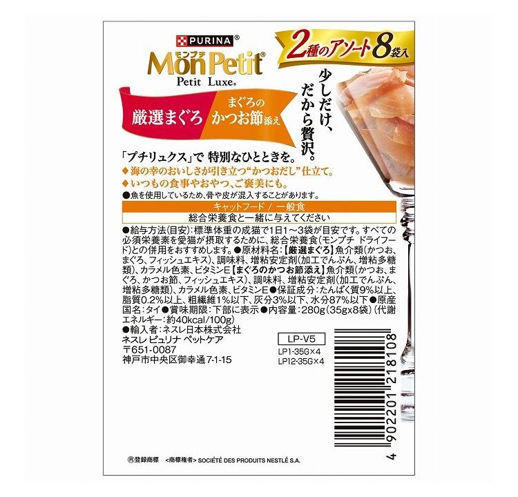 【6個セット】 ネスレ日本 モンプチ プチリュクスパウチ 2種まぐろ鰹節 35g×8P【ポイント10倍】 【送料無料】