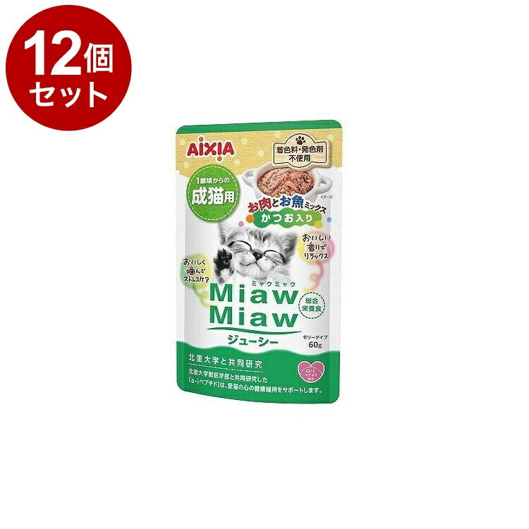 【12個セット】 アイシア MiawMiaw ジューシー お肉とお魚ミックス かつお入り 60g【ポイント10倍】