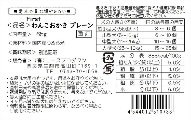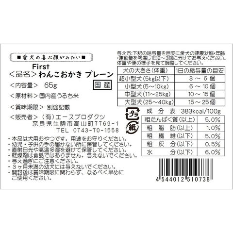 【3個セット】 エースプロダクツ わんこおかきプレーン 65g【ポイント10倍】