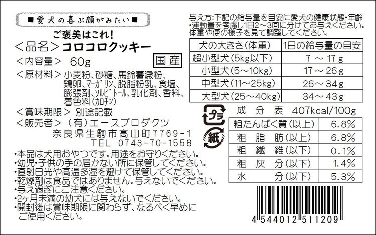 【12個セット】 エースプロダクツ コロコロクッキー 60g【ポイント10倍】 【送料無料】