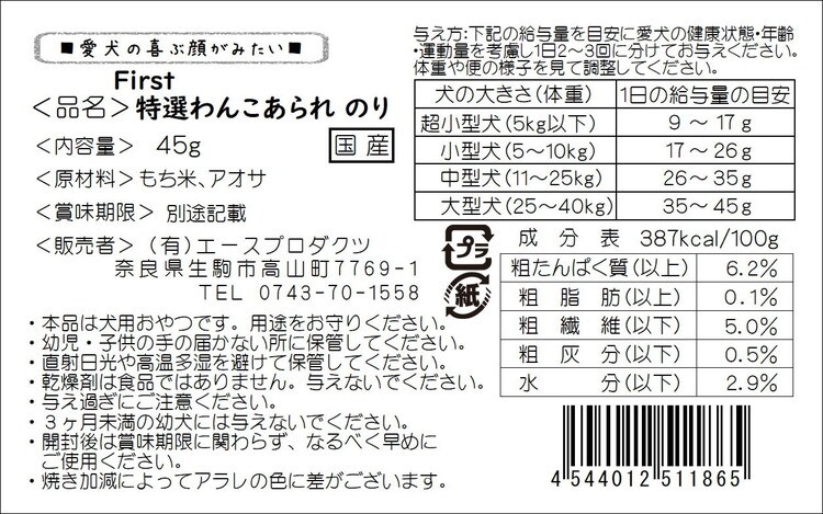 【12個セット】 エースプロダクツ 特選わんこあられのり 45g【ポイント10倍】 【送料無料】