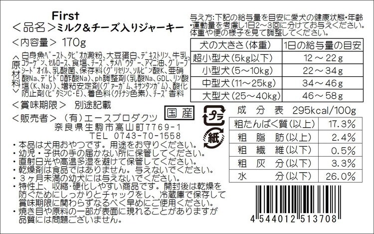 【6個セット】 エースプロダクツ ミルク&チーズ入りジャーキー 170g【ポイント10倍】 【送料無料】