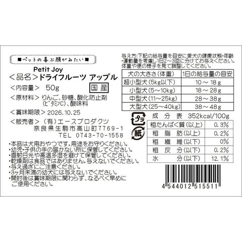 【6個セット】 エースプロダクツ Petit Joy ドライフルーツアップル 50g【ポイント10倍】 【送料無料】