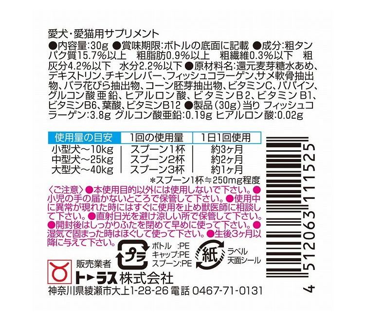 【4個セット】 トーラス 酵素サプリメント 被毛・皮膚 30g【ポイント10倍】 【送料無料】