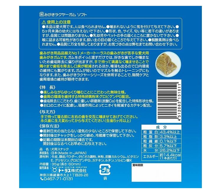 【6個セット】 トーラス 歯みがきラクヤーガム ソフト 35g【ポイント10倍】 【送料無料】