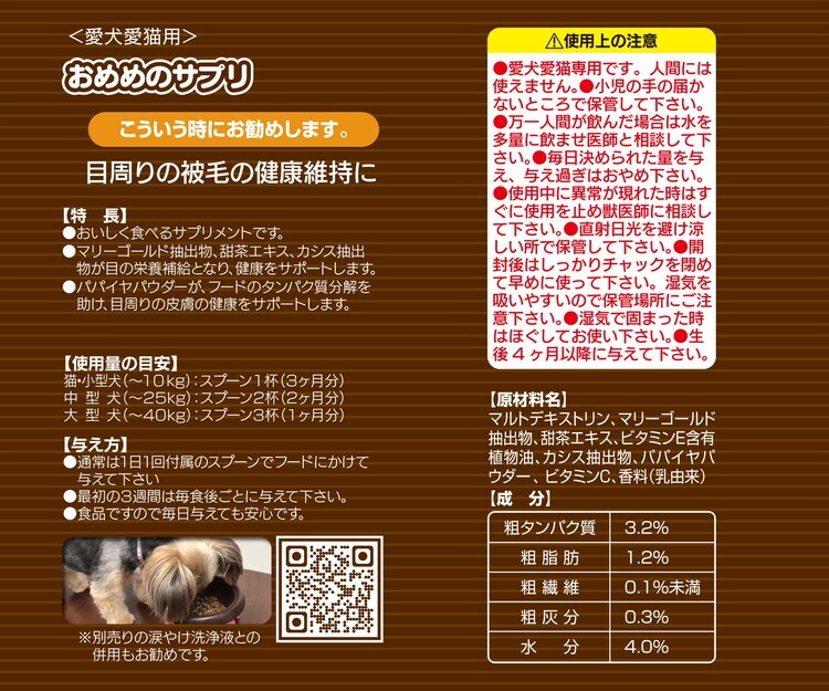 パパイヤパウダーに含まれる成分が、フードのタンパク質分解を助け、目周りの皮膚の健康をサポートします。