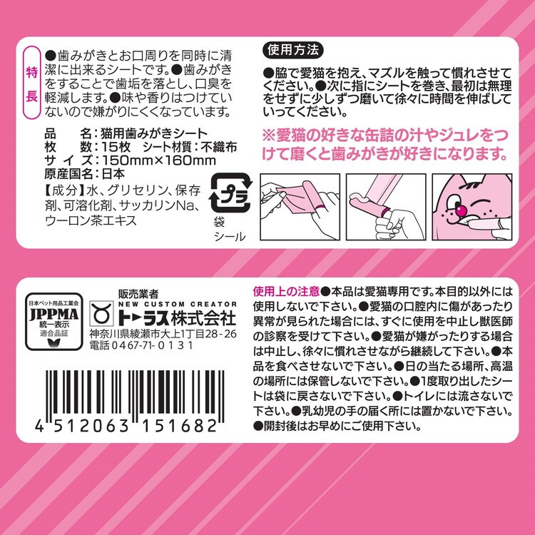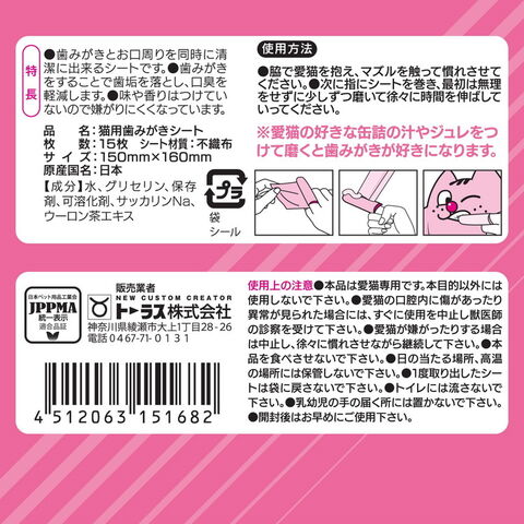 トーラス 歯垢トルトル プラケアシート 愛猫用 15枚【ポイント10倍】