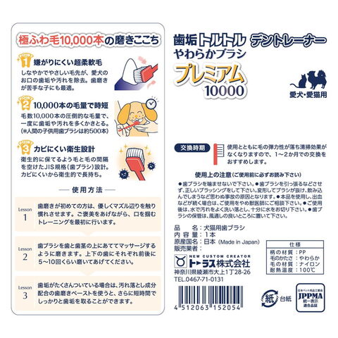 しなやかでやさしい毛先が、愛犬のお口の歯垢や汚れを除去。毛数10000本の圧倒的な毛量です。