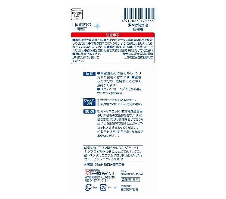 トーラス 涙やけ洗浄液 白毛用 25ml【ポイント10倍】