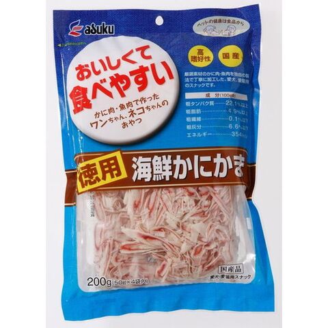 鱈すり身、小麦澱粉、D-ソルビトール、調味料(アミノ酸等)、かに肉、食塩、植物油脂、着色料(紅麹、コチニール、アナトー)