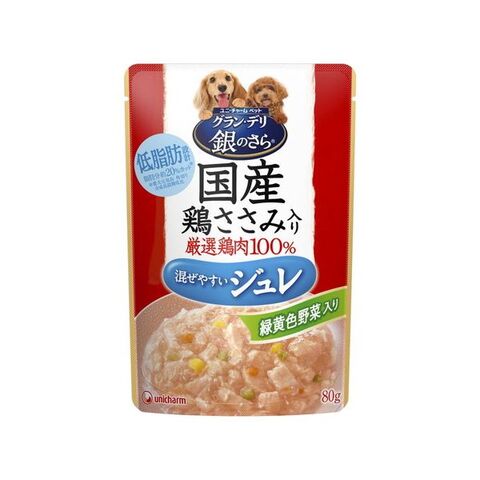 ユニ・チャーム グラン・デリ銀のさらパウチジュレ成犬用鶏ささみ・緑黄色野菜入り80g