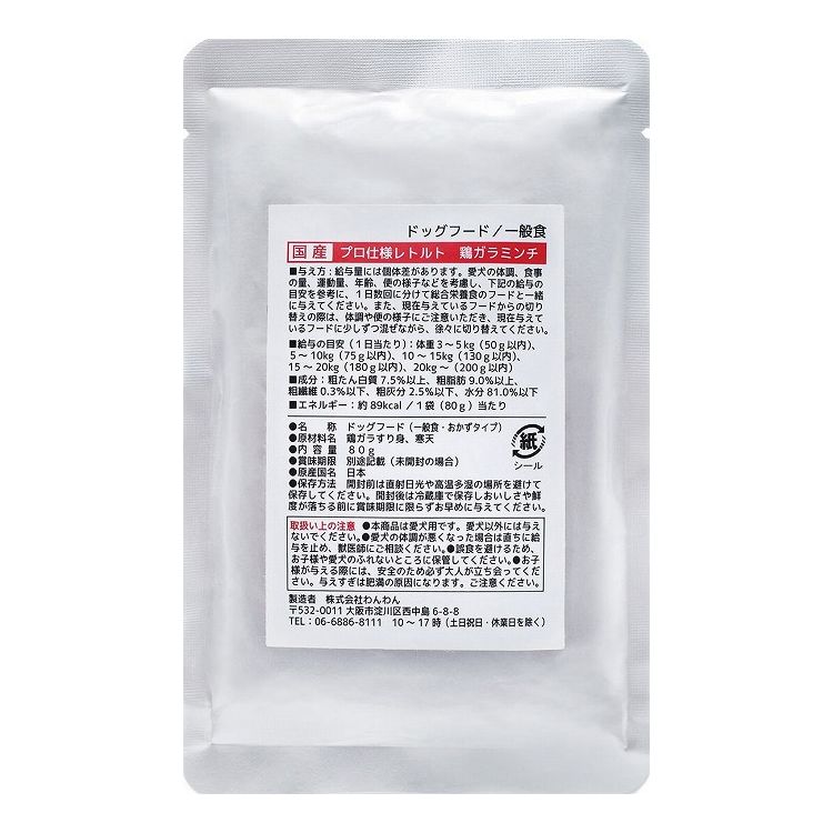 わんわん プロ仕様レトルト 鶏ガラミンチ 80g【ポイント10倍】