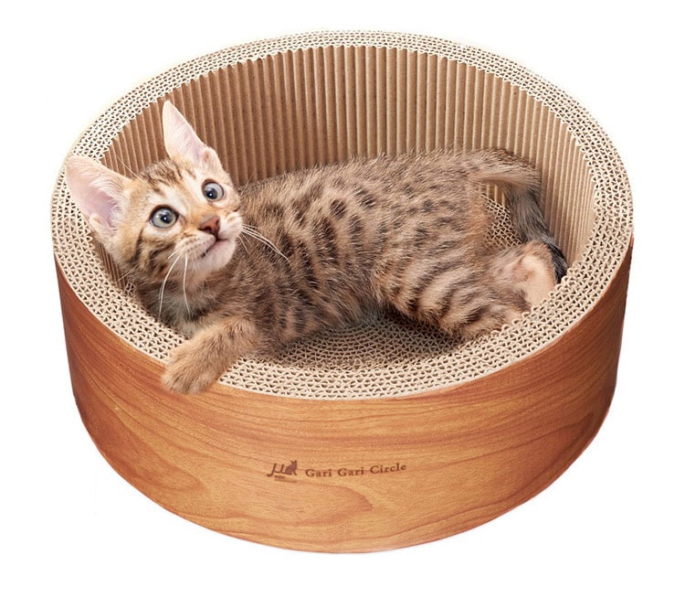 愛猫が丸くなってくつろげるサークル型爪とぎベッド。内側の爪とぎ素材は硬軟あります。少し小さめサイズ。