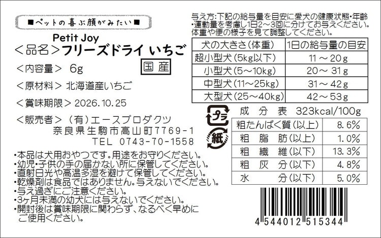 エースプロダクツ Petit Joy フリーズドライいちご 6g【ポイント10倍】