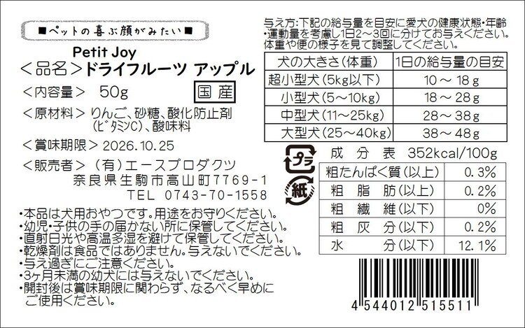 エースプロダクツ Petit Joy ドライフルーツアップル 50g【ポイント10倍】