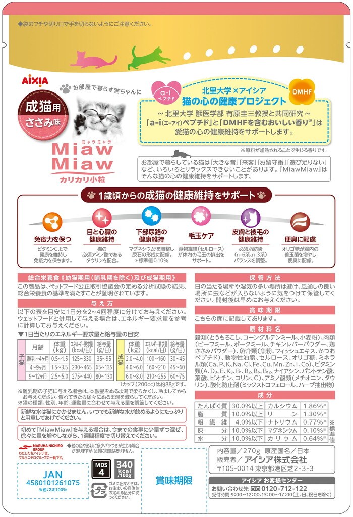 アイシア MiawMiawカリカリ小粒 270g ささみ味【ポイント10倍】