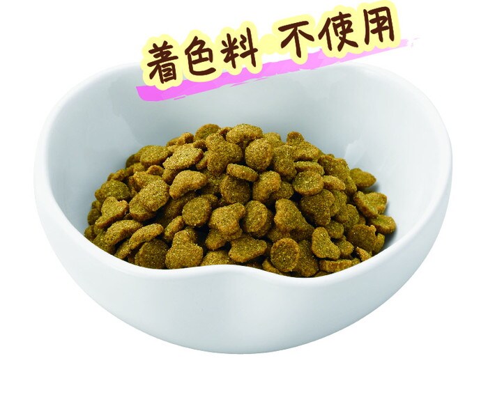 穀類(とうもろこし、コーングルテンミール、小麦粉)、肉類(ビーフミール、ポークミール、チキンレバーパウダー、鶏ささみパウダー)、魚介類(魚粉、フィッシュエキス、かつおペプチド)、動物性油脂、セルロース、オリゴ糖、ミネラル類(Ca、P、K、Na、Cl、Fe、Cu、Mn、Zn、I、Co)、ビタミン類(A、D3、E、K3、B1、B2、B6、B12、ナイアシン、パントテン酸、葉酸、ビオチン、コリン、C)、アミノ酸類(メチオニン、タウリン)
