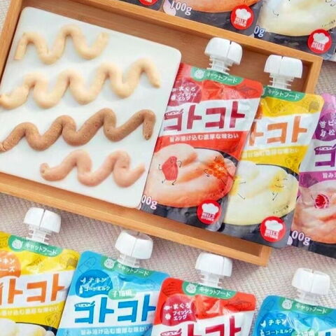蓋が大きく開けやすい。スパウトが付いて手に持って与えやすく、汚れにくい。そのままおやつとして与える! いつものフードと混ぜ合わせて、嗜好性を高める! 水分の補給としても! にがいお薬と一緒に与えても!