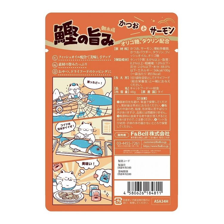 かつお、サーモン、増粘多糖類、かつおパウダー、タウリン、フィッシュオイル、オリゴ糖
