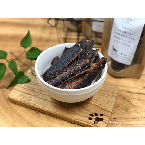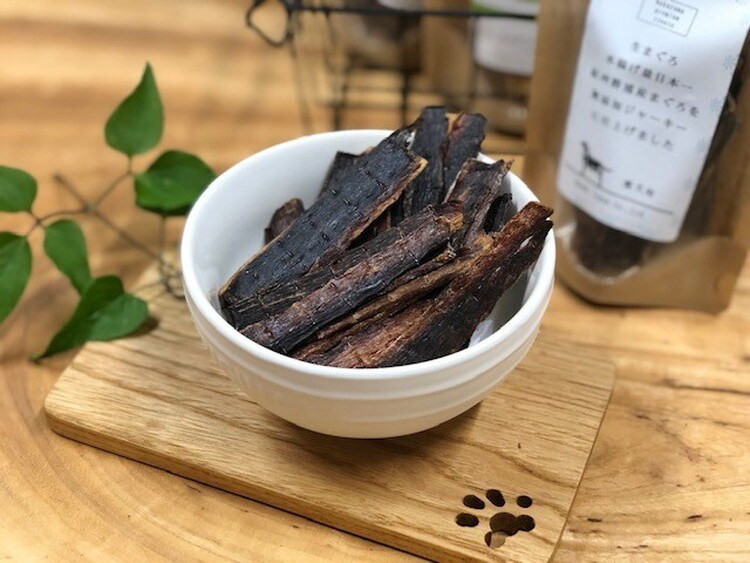 和歌山県那智勝浦産の生まぐろを香り高い無添加ジャーキーにしました。与えやすい薄型のスティックタイプ。