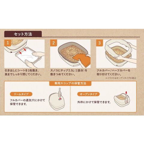 1組(フルカバー、スノコ、引き出し付きトレー[引き出し受け・引き出し]、専用スコップ)