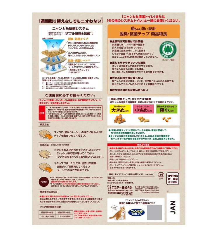 エステー ニャンとも清潔トイレ 脱臭抗菌チップ 大きめの粒 4.4L 猫砂 猫トイレ 猫用トイレ システムトイレ用 ニャンとも にゃんとも【ポイント10倍】