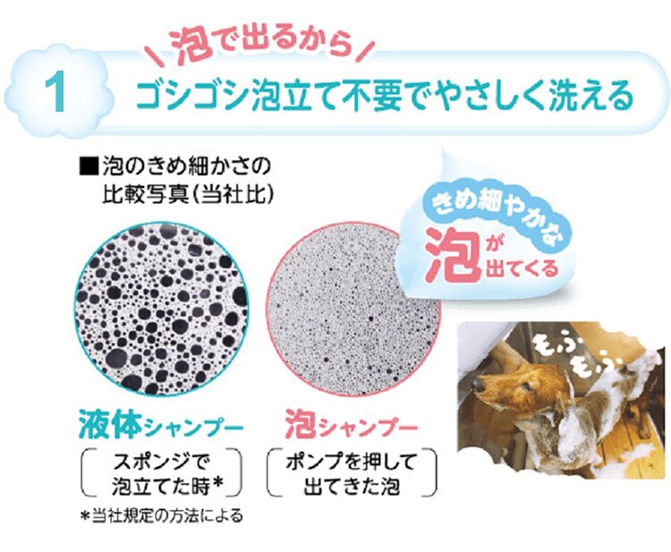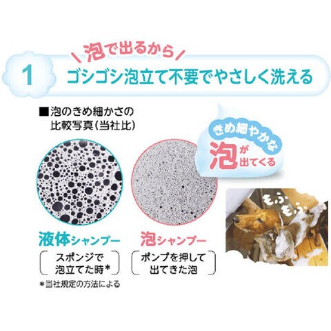 泡立ていらずのらくらくシャンプー。きめ細かい泡で汚れ・ニオイをすっきり洗い流します。