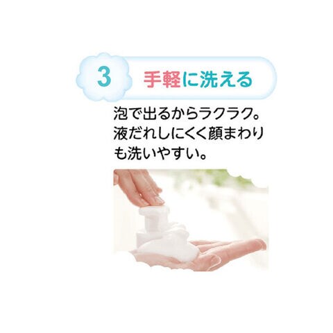 泡で出るから液だれしにくく、顔まわりも洗いやすい。洗浄成分の100%が植物生まれ。