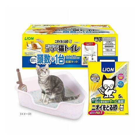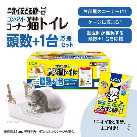 ライオンペット ニオイをとる砂 コンパクトコーナー猫トイレ 頭数+1台応援セット【ポイント10倍】