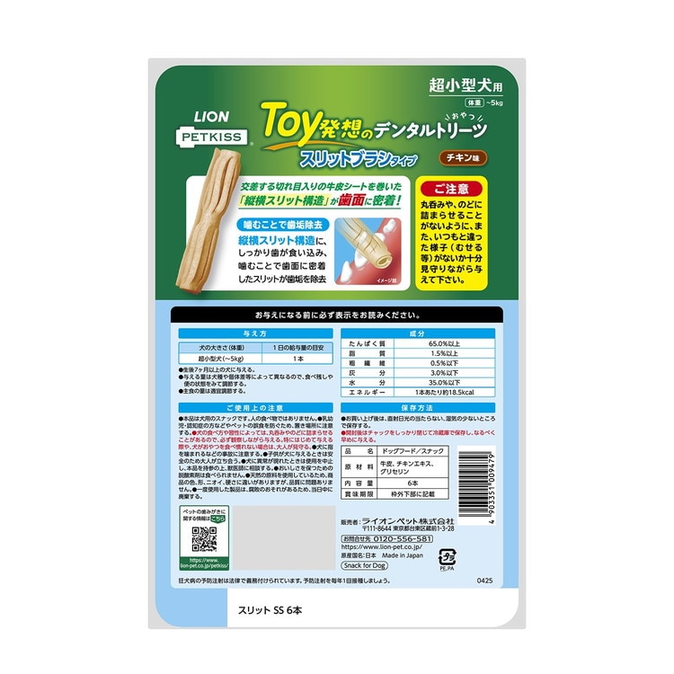ライオンペット PETKISS Toy発想のデンタルトリーツ スリットブラシ 超小型犬 6本【ポイント10倍】