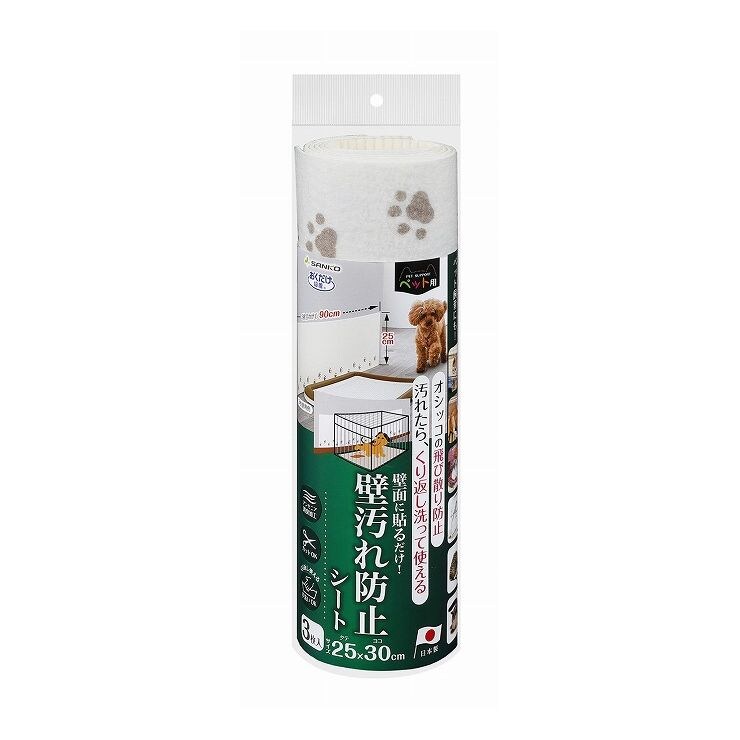 サンコー 吸着壁汚れ防止シート 3枚入 犬 猫 イヌ ネコ おくだけ吸着