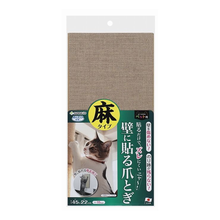 サンコー 吸着 壁に貼れる猫のつめとぎ 日本製 国産 麻 おくだけ吸着 爪とぎ 壁に貼る 45×22cm 猫 ネコ