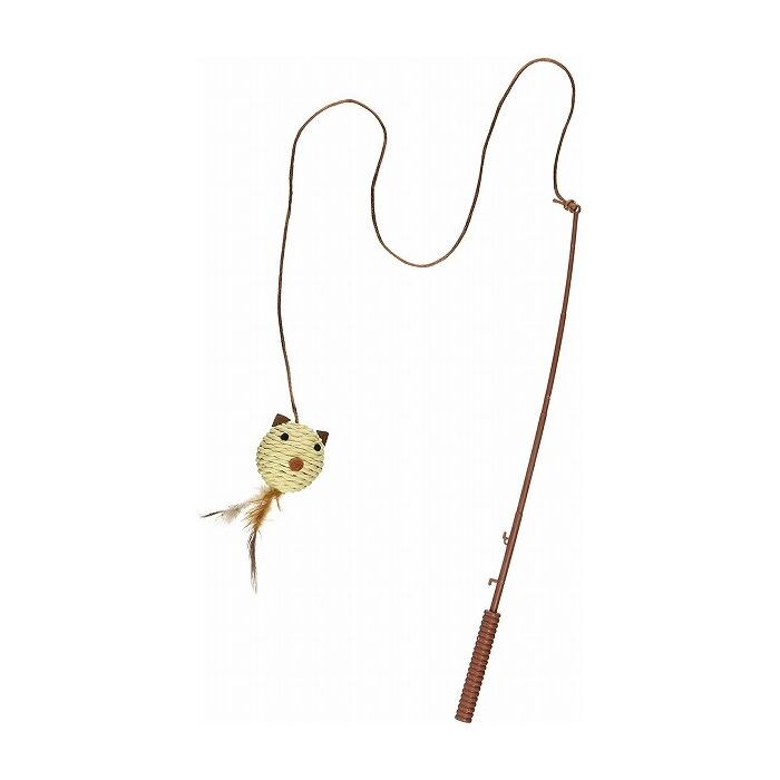 ●落ちついた自然の色合いのナチュラルなひも付き猫じゃらし。●紙ひもを使用。ひもの長さは約70cm、竿の長さは約37cm。●長い紐で動きが大きく、愛猫も夢中に。●鳥の羽のシッポがたまらない、ボールのような「ネコさん」。ゆれるとカラコロと音が鳴る。●色指定不可。