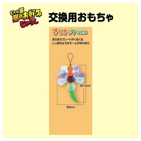 4976555844498じゃれ猫お好みじゃらし交換用おもちゃ。きらきらプレートとしっぽのモールが魅力的。クルクル回るきらきらプレートは直径約8cm。クリオネのようなフォルムは全長約12cm。長い竿に合わせたボリュームのあるサイズ。キラキラ光るプレートとモール、どちらも猫ちゃんが大好きな素材。竿のアクションに合わせてクルクル、キラキラ、くねくね。愛猫の大好きな動きをする。日本製。頭から尻尾までの長さ約10cm、翼の幅約8cm。