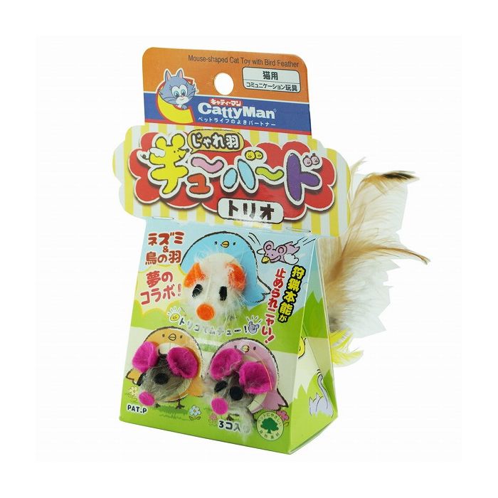 ●猫ちゃんが大好きな鳥の羽で作ったねずみ型のおもちゃ。●とっても軽く、天然の羽の匂いに大興奮間違いなし!●初めての方にもお試し頂きやすい3匹セットです。