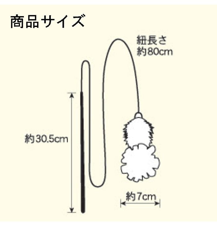 ・猫ちゃんが大好きなゆらゆら揺れるふわふわの鳥の羽を使い、チュールと組み合わせる事でかわいさアップ!・ゴム紐を伸ばして上下左右に振ったり、隠したりと遊びながら猫ちゃんの狩猟本能を刺激します!・大きな動きが大好きな猫ちゃんにオススメの紐付きタイプの猫じゃらしです。