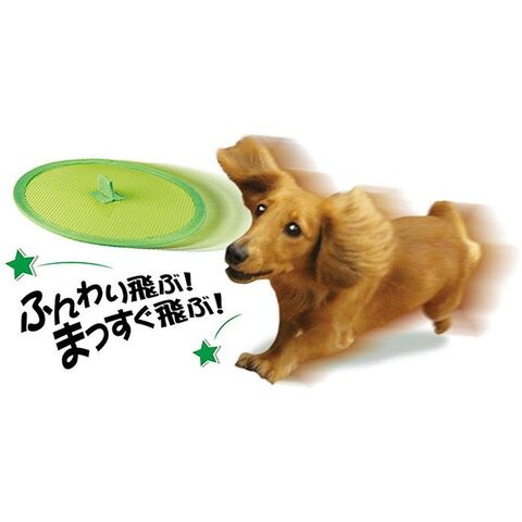 室内仕様のフライングディスク。軽量、ソフトでふんわりまっすぐ飛ぶ。床に落ちてもくわえやすいへそ付き。お部屋で遊べるフライングディスク。楽しいコミュニケーションに、運動量アップに使える。お部屋遊びに配慮したやわらかなフレーム。本体はメッシュ地。軽くてやわらか。メッシュ地の本体が空気抵抗を減らし、ふんわり、まっすぐ飛ばせやすい。床にピタッと落ちてもくわえやすいおへそ付き。直径約18cm。