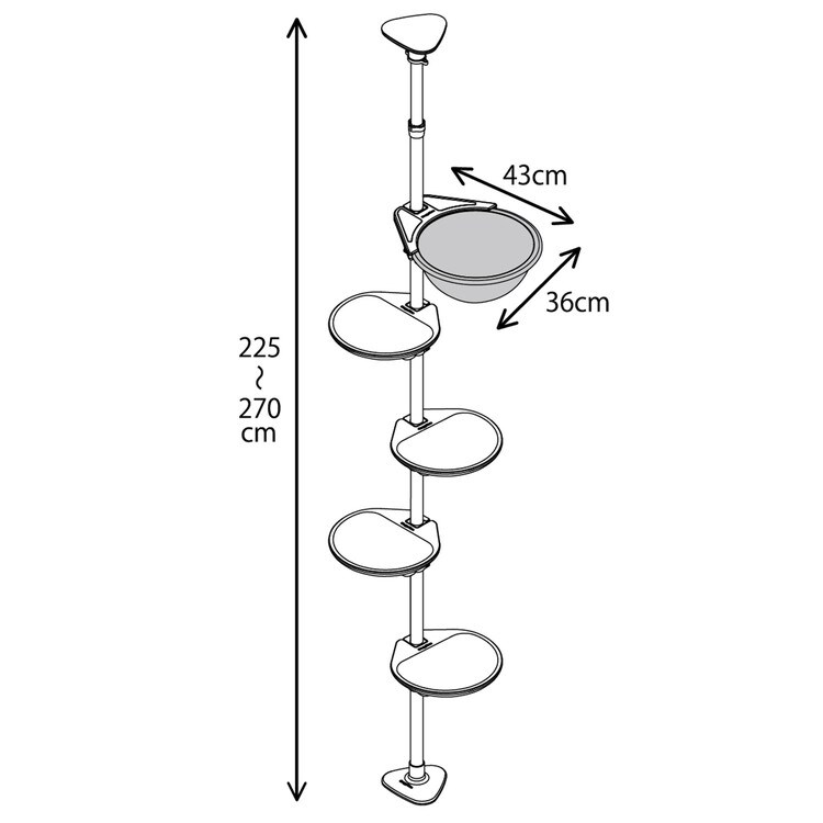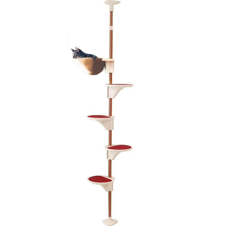 簡単に取り付け、取り外しができ、自由にステップの高さや向きを変えられる、ハンモック付き猫用遊具。
