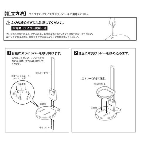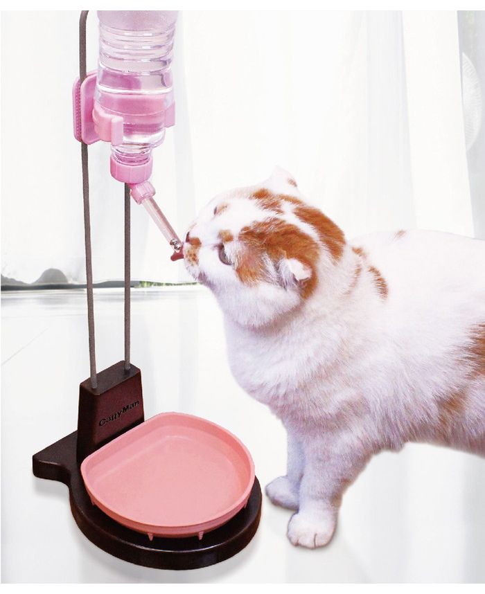 ●市販のボトル給水器を取り付けて使用できる。●成長してサークルやケージが必要なくなった猫ちゃんに場所を取らず、お部屋のインテリアに合わせやすい。●シンプルで機能的なデザインのスタンド。●スライド式で簡単高さ調整(飲み口高さ床から約4~35cm)、飲みこぼしをキャッチする水受けトレー付き。●台座裏にすべり止めのゴム付き。
