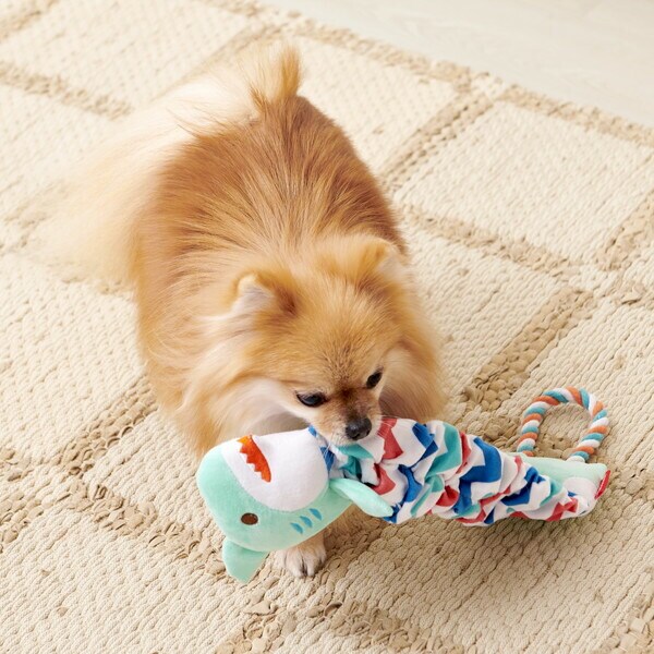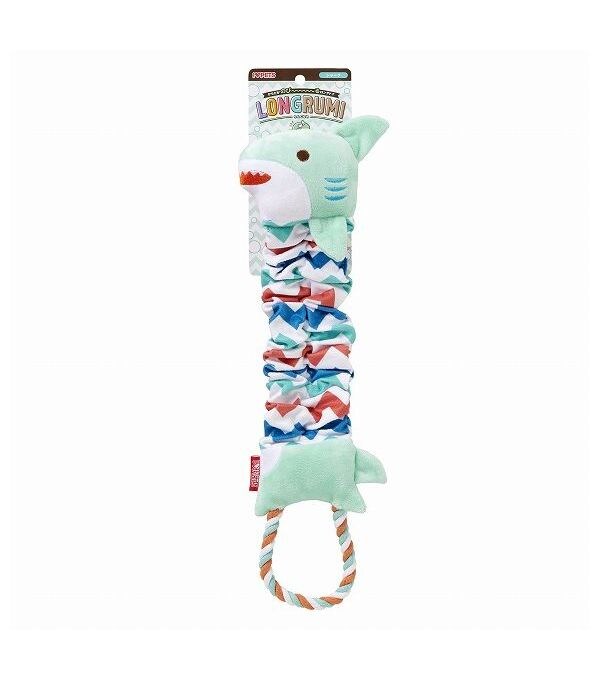 体はゴム入りで、引っぱり合いや、長い体をくねくね動かして遊べます。顔部分はピーピー笛入り、足部分は引っぱり合いがしやすいロープ付きです。