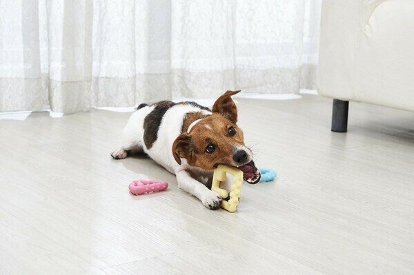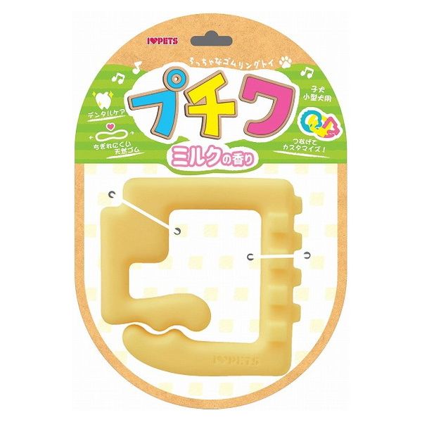 ・小型犬や仔犬でも咥えやすいサイズ ・凸凹を噛むことで歯磨き効果・ミルクの香りつき ・いろんなモノと組み合わせてオリジナルのおもちゃが作れる ・ちぎれにくい天然ゴムを使用