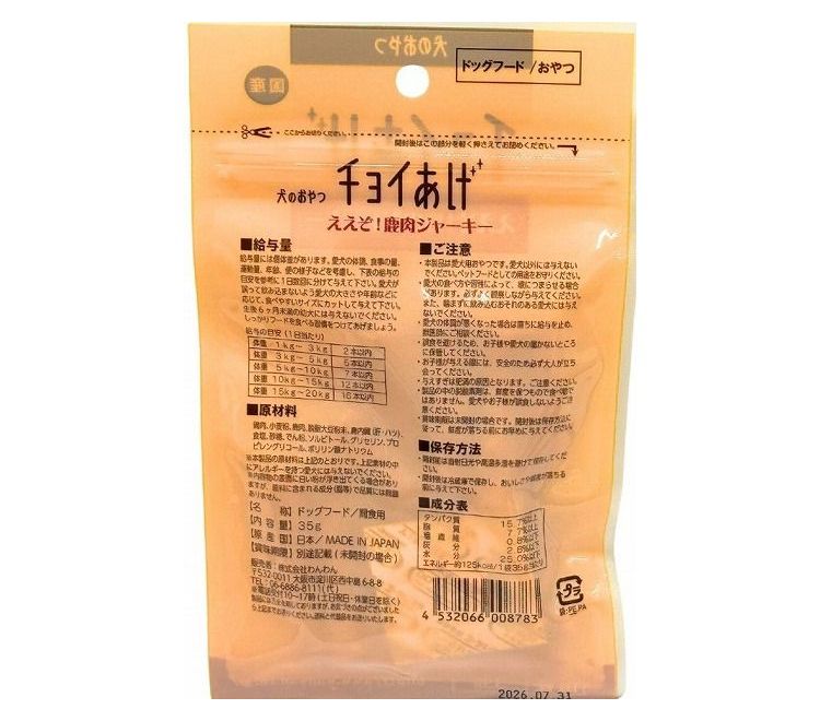 【20個セット】 わんわん チョイあげ ええぞ!鹿肉ジャーキー 35g【ポイント10倍】 【送料無料】