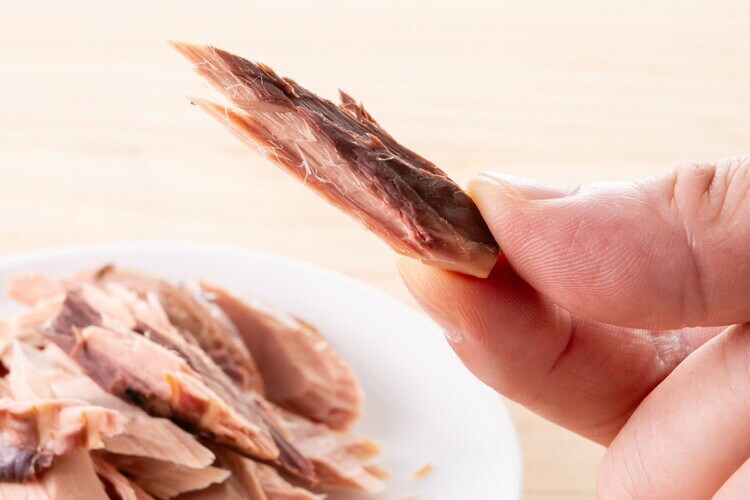 タンパク質30.0%以上、粗脂肪0.8%以上、粗繊維0.5%以下、粗灰分1.5%以下、水分65.0%以下、エネルギー(100g当り)150Kcal