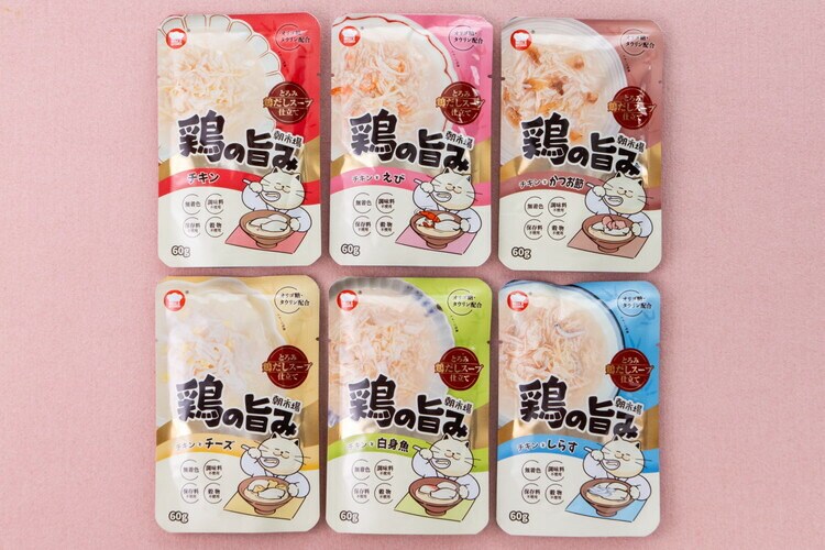 鶏肉とえびだけを原料に使用。食品添加物不使用。必須栄養素に必要なタウリン・オリゴ糖を配合して健康に配慮しました。