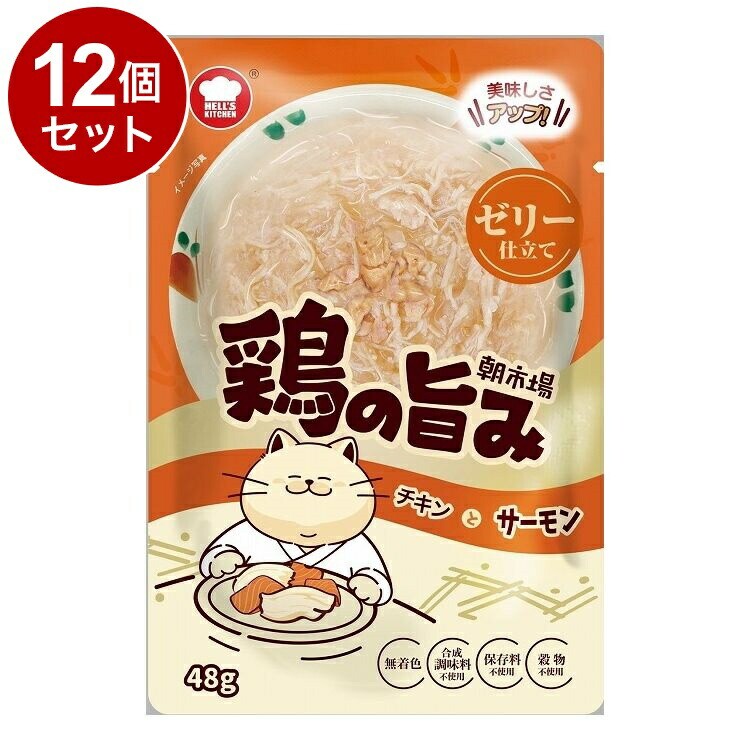 【12個セット】 F&Bell ヘルズキッチン 朝市場 鶏の旨み ゼリー仕立て サーモン 48g HELL'S KITCHEN