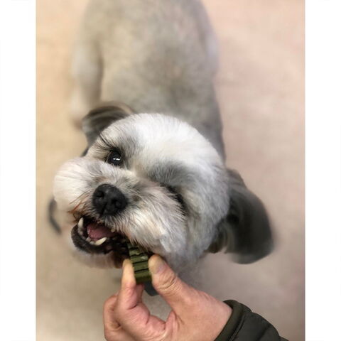 ●ワンちゃんの歯と歯茎の健康を守るガムです。人でも食べられる原材料を使っているので安心して与えることができます。どの方向から-んでも溝に歯が自然とはまり、やさしい摩擦を誘導して汚れを除去します。
