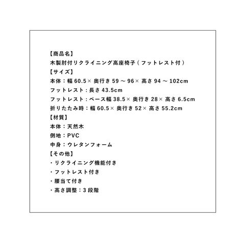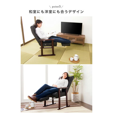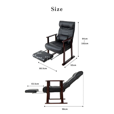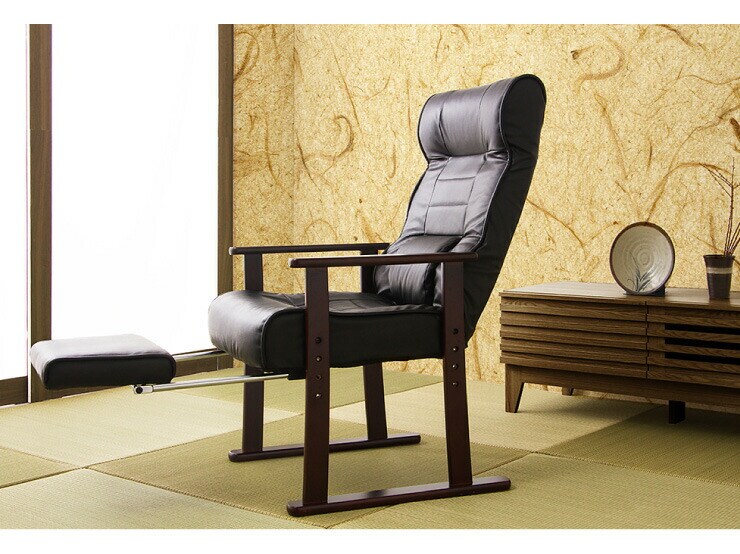 木製肘付リクライニング高座椅子(フットレスト付)