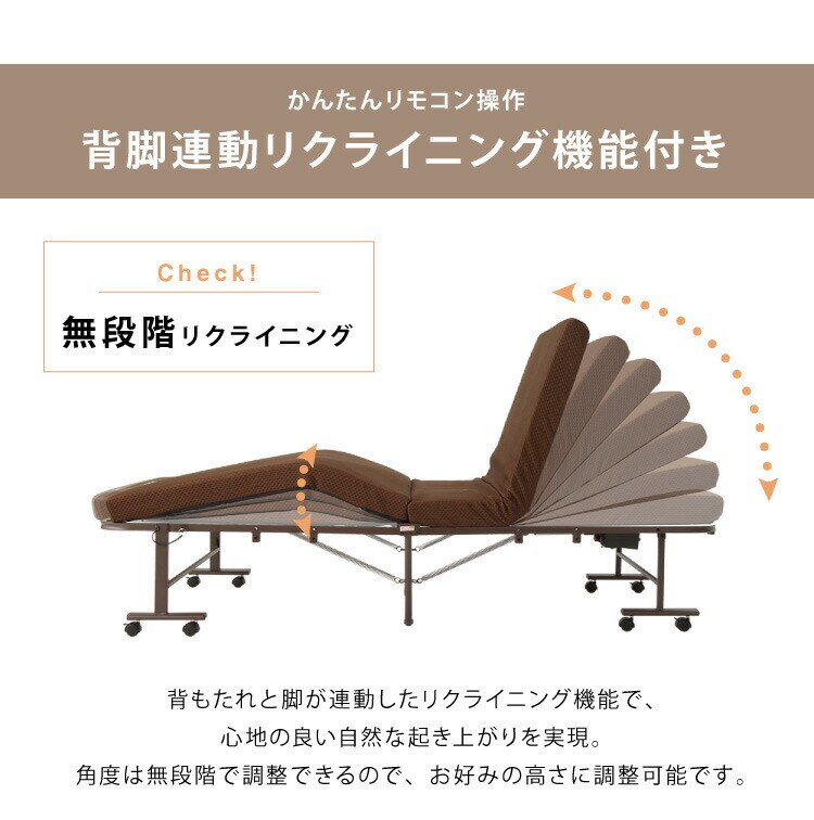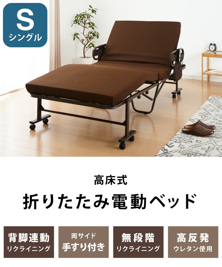 電動ベッド 高床式 45cm 高反発ウレタン使用 シングル 厚さ10cm 電動リクライニング 折りたたみベッド 電動 組立て不要 完成品 介護ベッド 折り畳み リクライニングベッド【送料無料】