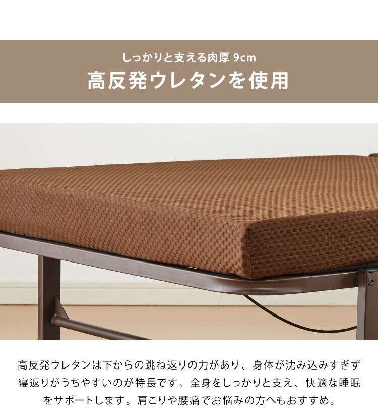 ・マットレスは高反発ウレタンを使用。体全体を包み込みます。